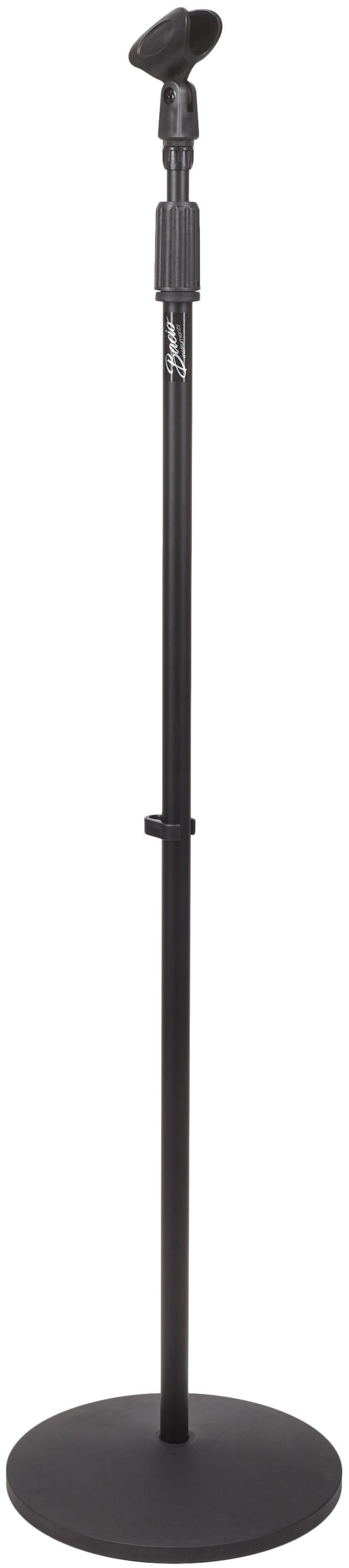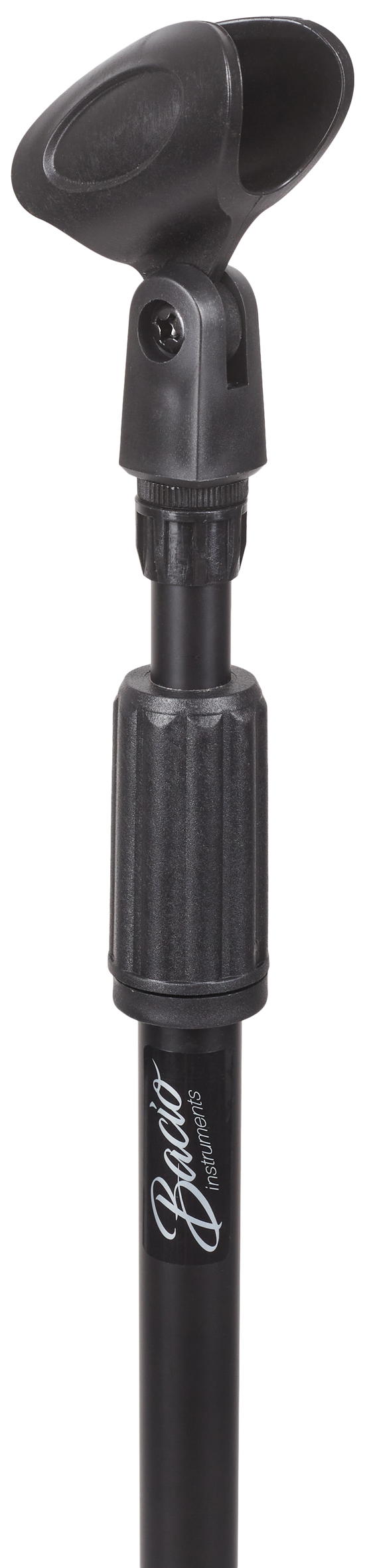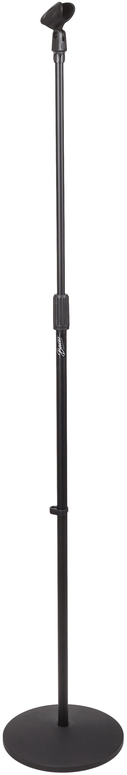 Rovný mikrofonní stojan s kovovou kruhovou základnou o průměru 25 cm a nastavitelnou výškou. Stojan je vhodný pro dynamické, bezdrátové i kondenzátorové mikrofony a je dodáván spolu s mikrofonním držákem.