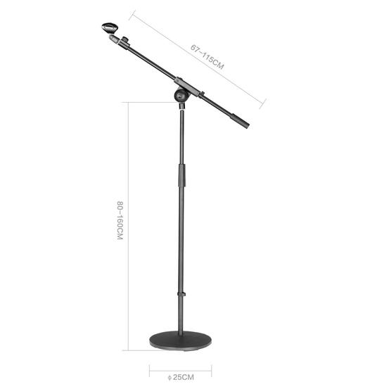 Mozos SM810 je univerzální a robustní mikrofonní stojan s boom ramenem, který nabízí maximální flexibilitu při nastavení mikrofonu pro nahrávání, podcasty, streaming i živá vystoupení. Díky širokým možnostem nastavení výšky a délky ramene si snadno přizpůsobíte ideální pozici pro zpěv, mluvené slovo i snímání nástrojů. Stabilní konstrukce a kvalitní zpracování z něj dělají spolehlivého partnera pro domácí i profesionální použití. Stojan disponuje nastavitelnou výškou v rozmezí 75 až 137 cm, což umožňuje pohodlné použití ve stoje i vsedě. Boom rameno o délce 59 až 112 cm pak poskytuje dostatek prostoru pro přesné umístění mikrofonu například nad nástrojem nebo přímo před vokalistu. Konstrukce je tvořena odolnými kovovými trubkami s různými průměry (12 / 16 / 20 mm), což zajišťuje vysokou pevnost a minimalizuje nežádoucí vibrace při práci. O maximální stabilitu se stará pevná kovová základna o průměru 25 cm, která udrží stojan bezpečně na místě i při náročnějším použití. Rameno unese mikrofony o hmotnosti až cca 1 kg, takže je kompatibilní s většinou běžných dynamických i kondenzátorových mikrofonů. Celková hmotnost 3,41 kg zajišťuje ideální poměr mezi stabilitou a snadnou manipulací. Mozos je značka známá svým důrazem na dostupné a funkční příslušenství, které splňuje požadavky moderních tvůrců. Model SM810 je tak skvělou volbou pro každého, kdo hledá spolehlivý mikrofonní stojan s boom ramenem pro každodenní použití ve studiu i na pódiu.