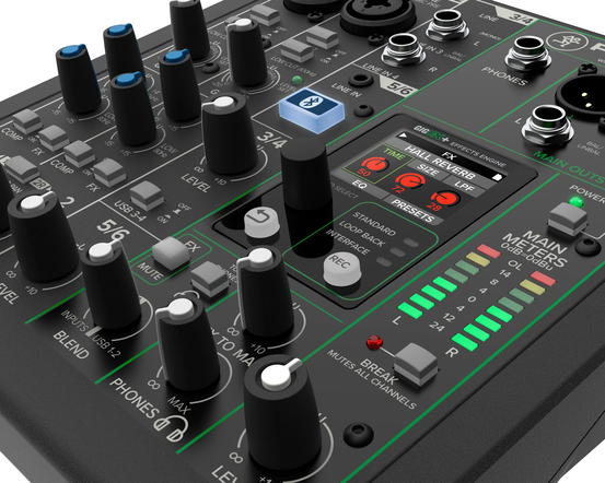 Analogový mixážní pult ProFX6v3+ od renomovaného výrobce Mackie pokračuje v nastolené tradici a flexibilně se přizpůsobuje aktuálním trendům a požadavkům. Stejně jako starší verze bez "+" v názvu nabízí šest kanálů, dvoupásmový ekvalizér na prvních dvou kanálech, preampy Onyx s 60 dB gainu a prakticky nulovým šumem pro maximálně čistý přenos zvukového signálu, efektový procesor GigFX se 24 efekty (od reverbů po delay efekty) a nahrávání ve vynikající kvalitě díky 192 kHz/24 bit 2x 4 USB rozhraní. Novinkou je kanál vybavený Bluetooth pro posílání a přijímání audia ze zařízení jako smartphone nebo tablet, který nabízí podcasterům jednoduchý způsob jak přijímat příchozí hovory. Další rozšíření funkcí představují tři režimy USB nahrávání - v modu Standard nahráváte celý mix hlavních kanálů včetně efektů a EQ do PC/DAW, v modu Loopback naopak nahráváte audio z PC do mixpultu, což je ideální při streamování her nebo hraní/improvizování do doprovodných tracků, a v modu Interface nahráváte do PC/DAW čistý signál z hlavních kanálu 1 a 2 bez příměsí v podobě efektů a EQ. Jako u starší verze jsou k dispozici dva hlavní kanály s kombi XLR/Jack vstupy, linkové vstupy (2 x 1/4" line, 1 x 1/8" stereo), výstup do sluchátek a symetrické a nesymetrické výstupy (2 x XLR, 2 x 1/4" L/R).