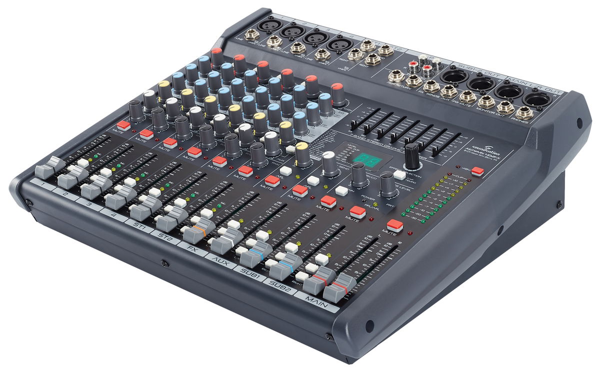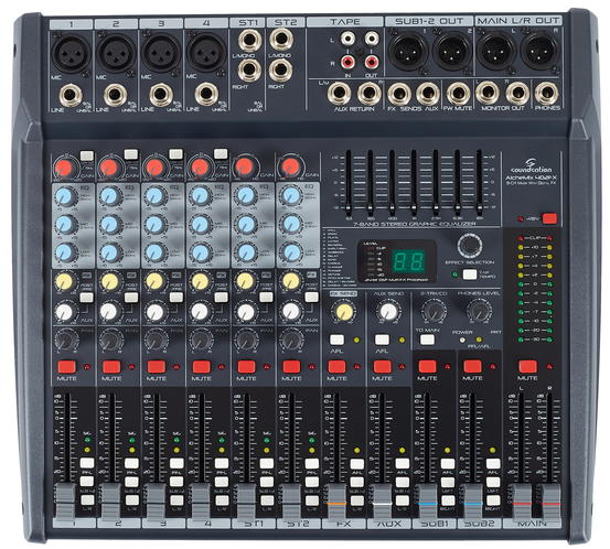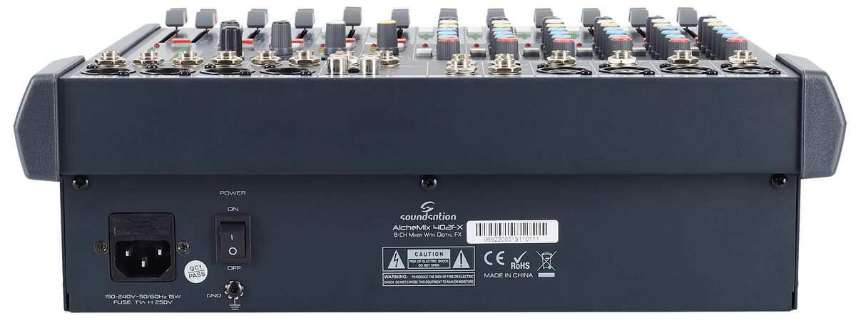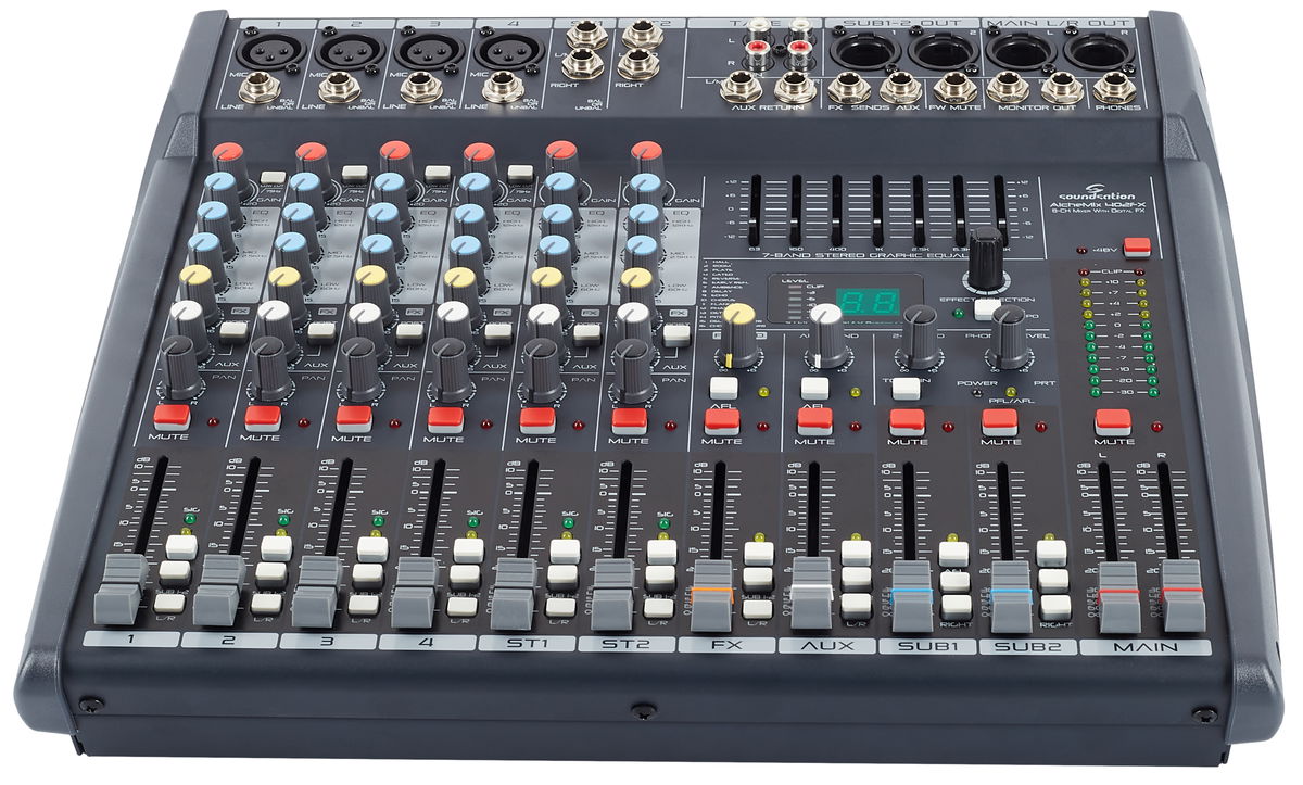Řada vysoce kvalitních mixpultů ALCHEMIX od značky Soundsation vám nabídne skvělé uživatelské vlastnosti, intuitivní ovládání a brilantní efektový procesor. Mikrofonní vstupy disponují ultra tichým předzesilovačem a fantomovým napájením pro kondenzátorové mikrofony. Pulty jsou vhodné pro domácí nahrávací studia, zkušebny, vzdělávací zařízení nebo live performance. Alchemix 402FX je kompaktní profesionální mixážní pult, který disponuje odolnou a lehkou konstrukcí pro snadný transport. Osmikanálový pult nabízí čtyři vstupy pro mikrofony a hudební nástroje s fantomovým napájením, dva stereo vstupy pro klávesy a dvojici vstupů pro hudební přehrávače, tablety a DJ kontroléry. Pult dále disponuje šestnácti efekty o kvalitě 24bit/48kHz s Tap tempo tlačítkem, sedmipásmovým grafickým ekvalizérem, třípásmovým EQ pro instrumentální kanály, sluchátkovým výstupem a dvěma stereo XLR výstupy pro připojení k dalšímu PA.