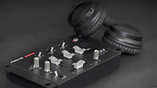 Kompaktní DJ mixážní pult se 3 stereo kanály a 1 mikrofonem, se zvukovou kartou pro PC a Bluetooth / USB přehrávačem.