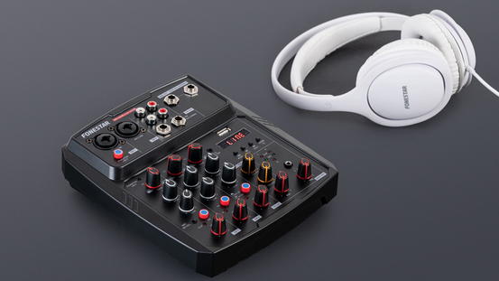 4-kanálový stereofonní mixážní pult s funkcí živého vysílání.