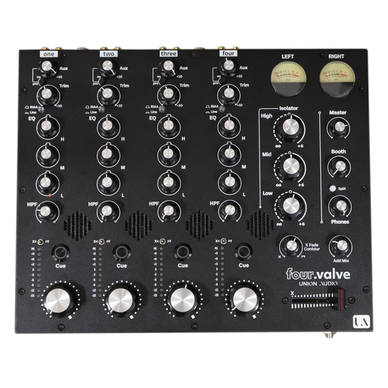 Union Audio four.valve je špičkový čtyřkanálový analogový DJ mixážní pult, navržený pro profesionály, kteří vyžadují bohatý a vřelý zvuk elektronkové (tube) technologie. Tento model v sobě spojuje výjimečný zvukový výkon, precizní řemeslné zpracování a charakteristický akustický podpis elektronek, čímž nabízí jedinečný a inspirativní zážitek z mixování.