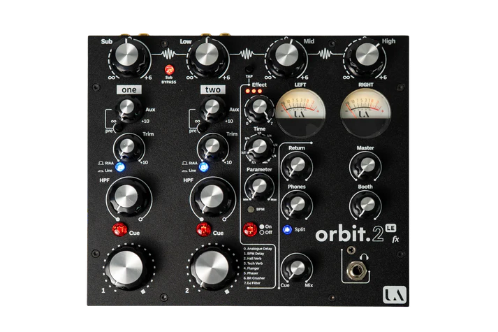 Union Audio Orbit.2 LE FX je vysoce výkonný dvoukanálový analogový DJ mixážní pult, který spojuje výjimečnou kvalitu zvuku s hmatovou přesností. Toto elegantně zpracované zařízení je navrženo pro uživatele vyžadující nejvyšší standardy v oblasti audio výkonu a kreativity. Jeho unikátní konstrukce v sobě integruje digitální DSP efektovou jednotku a výkonný čtyřpásmový izolátor, čímž nabízí bezkonkurenční kreativní potenciál v jediném kompaktním přístroji vhodném pro kluby, studia i domácí použití.