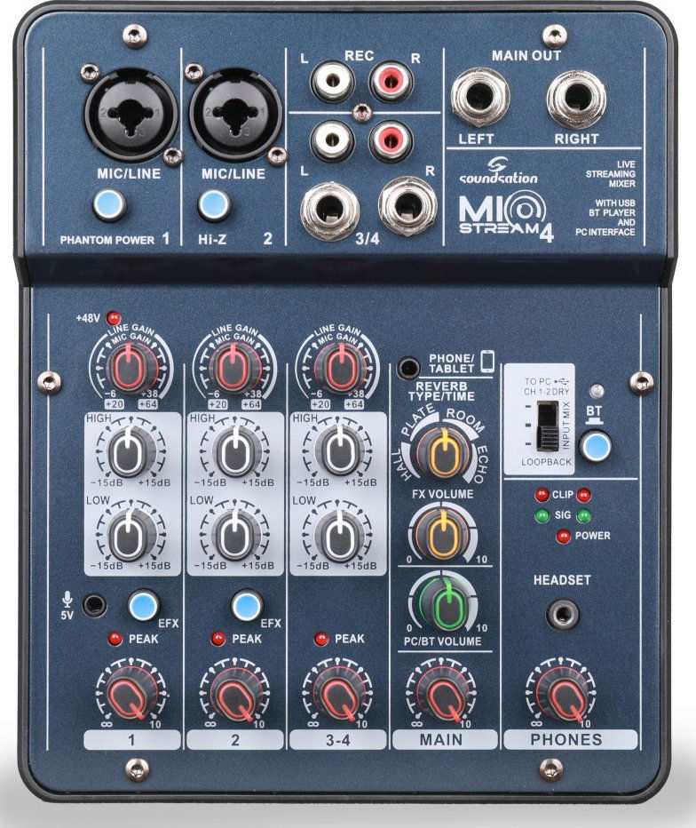 MIOSTREAM4 je moderní kompaktní mixážní pult navržený pro podcasty, livestream a mobilní produkci. Je určen pro uživatele, kteří chtějí rychlé zapojení, minimální nastavování a maximální kompatibilitu s mobilními zařízeními. Nabízí 2 mikrofonní vstupy a další linkové vstupy pro externí zdroje. Díky OTG připojení přes USB-C a TRRS konektoru lze mix snadno propojit s telefonem nebo tabletem. Integrovaná USB zvuková karta umožňuje přímé nahrávání a přehrávání z počítače. Součástí je také Bluetooth pro bezdrátové přehrávání hudby a digitální efektový procesor se 4 presety, které pomohou rychle vylepšit zvuk hlasu. Praktické rozměry dělají z mixu ideální nástroj na cesty. MIOSTREAM4 je vhodný pro každého, kdo hledá jednoduchý mix pro stream s OTG, USB-C a Bluetooth v co nejmenším formátu.