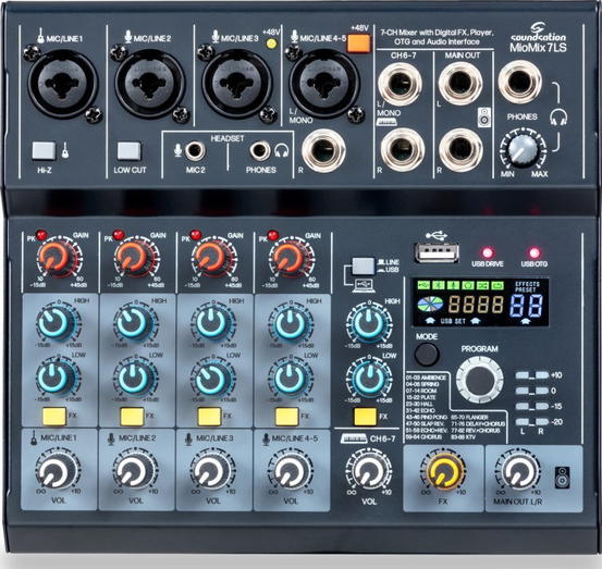 MIOMIX 7LS je rozšířená verze kompaktního mixu určeného pro podcast, livestream a online výuku, která nabízí více vstupů a vyšší flexibilitu při zachování snadné obsluhy. Mix disponuje několika mikrofonními vstupy, včetně Hi-Z vstupu pro nástroje, a umožňuje kombinovat mikrofony, nástroje i stereo zdroje v jednom zařízení. Každý kanál je vybaven 2pásmovým EQ a nechybí fantomové napájení pro kondenzátorové mikrofony. Díky OTG a Loopback funkci je možné mix snadno propojit s telefonem nebo počítačem a okamžitě streamovat. K dispozici je USB audio rozhraní, Bluetooth, USB přehrávač a digitální efektový procesor s 88 presety. Soundsation MIOMIX 7LS je ideální řešení pro tvůrce, kteří chtějí kompaktní streamovací mix s více vstupy a efekty bez složité konfigurace.