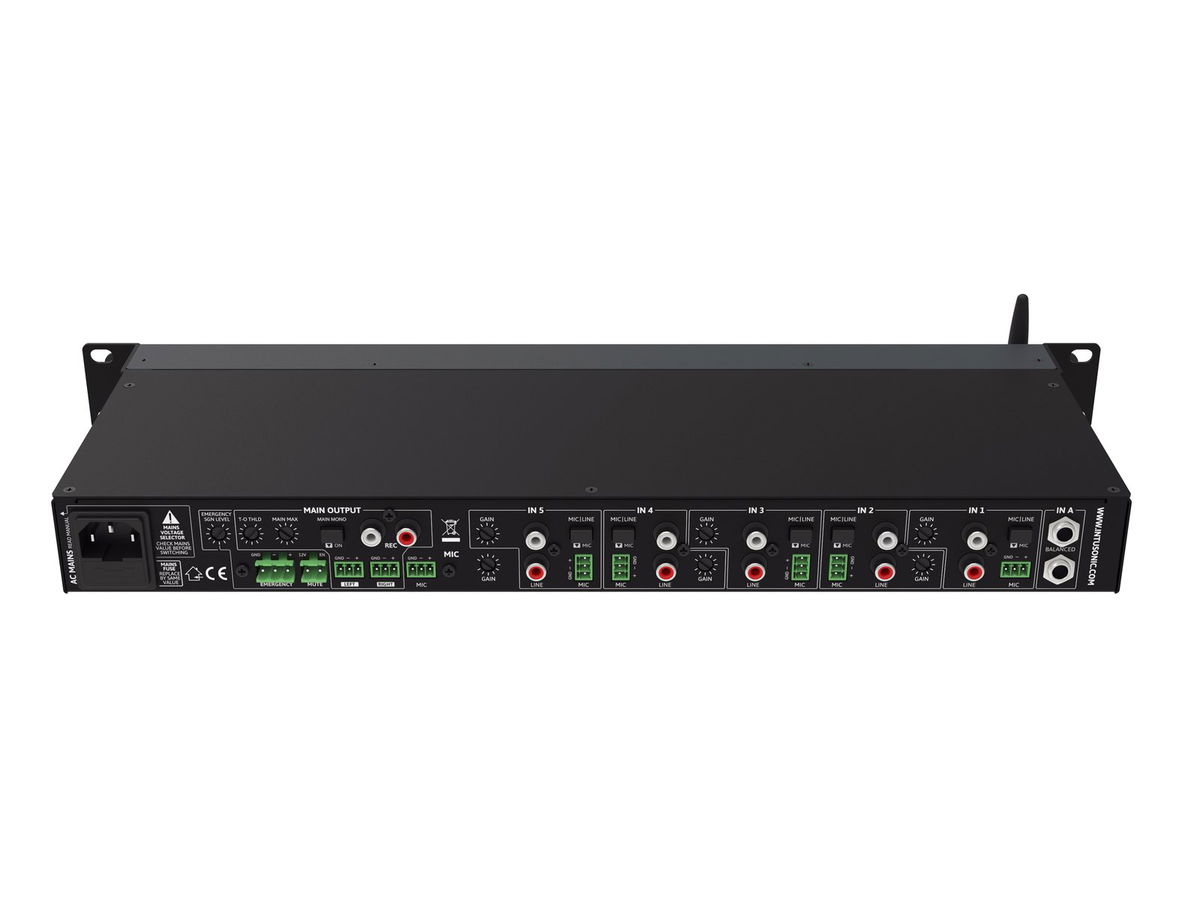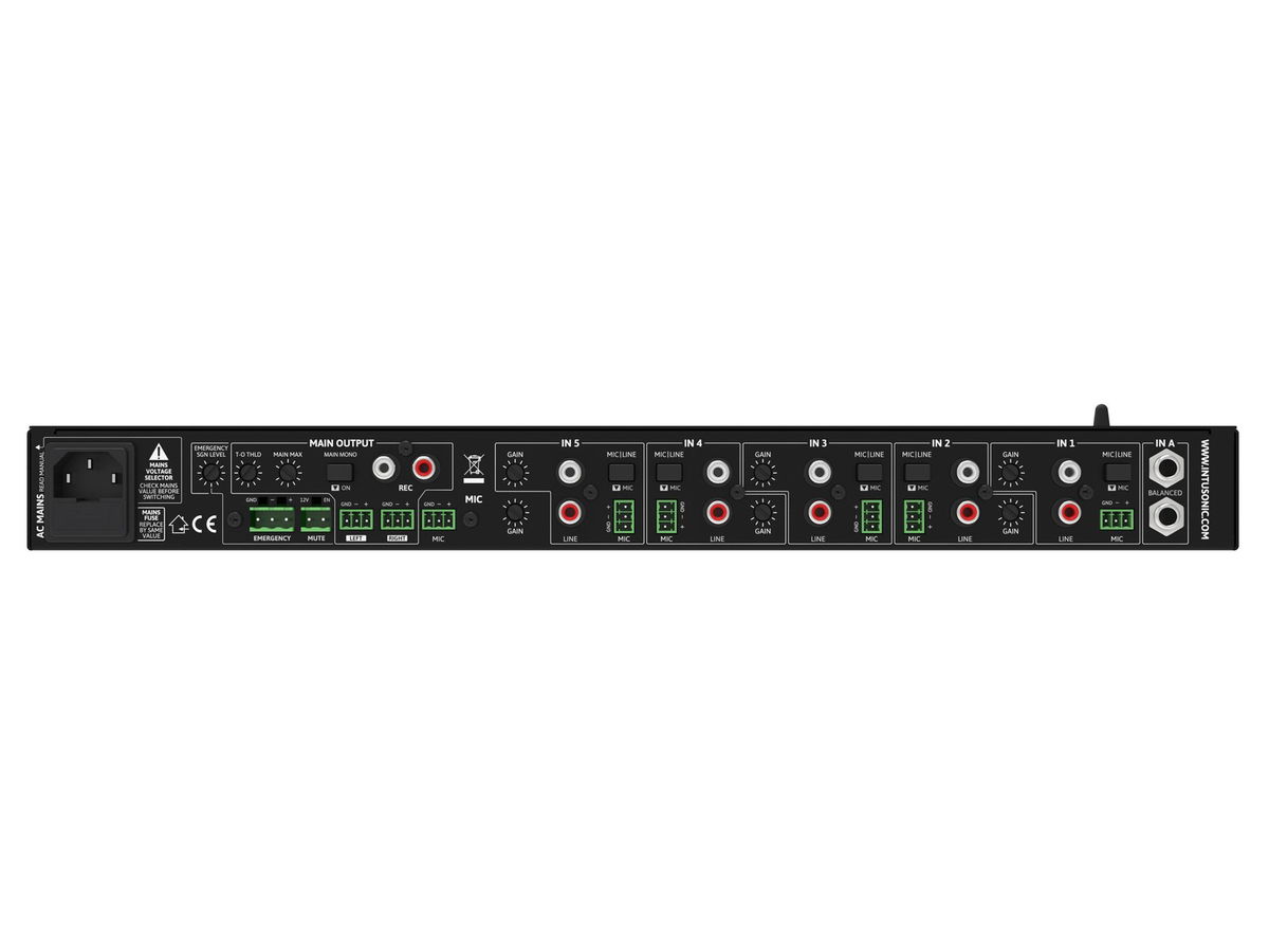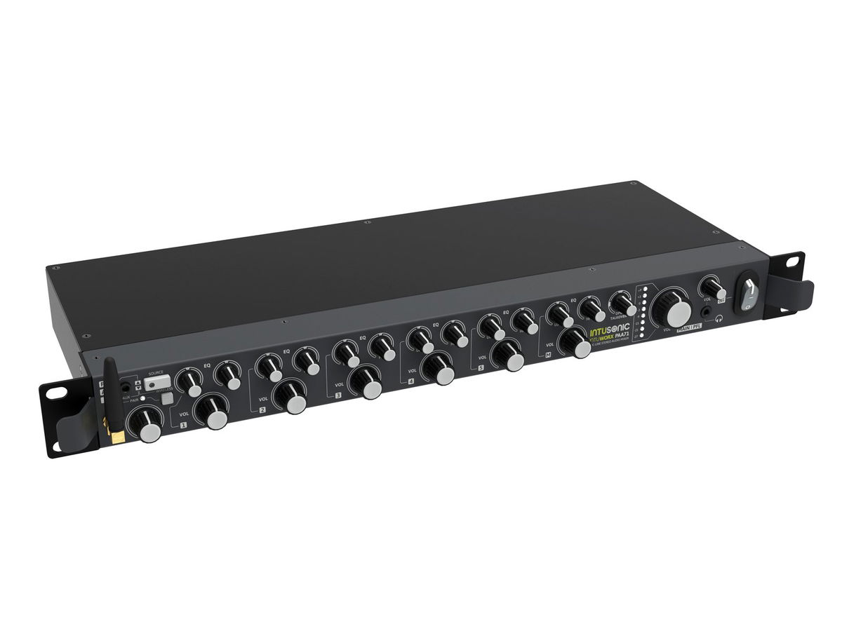 INTUWORX PAA71 je 7kanálový mikrofonní/linkový mixážní pult a dokonalé centrum jakéhokoli instalovaného zvukového systému. Nabízí 5 víceúčelových vstupů, které mohou být napájeny buď symetrickým mikrofonním signálem, nebo nesymetrickým stereo linkovým signálem. Jeden další vyvážený stereo linkový vstup je zvláště užitečný pro zdroje na větší vzdálenosti, jako je mix na pódiu nebo výstup systému vedlejší místnosti. Stejný vstup lze přepnout na příjem jeho vstupního signálu z 3,5 mm TRS jacku na přední straně nebo vestavěného bezdrátového audio spojení LINKOUSTIC 4.2. Dodatečný vyhrazený mikrofonní vstup s nastavitelným talkoverem (priorita) poskytuje kontrolu nad hlášeními. Každý vstup – s výjimkou symetrického stereo vstupu – je vybaven ovládáním zesílení na zadním panelu a 2pásmovým ekvalizérem na předním panelu. Vstupní připojení externího vypínacího a nouzového signálu umožňuje v případě potřeby integraci s centrálním oznamovacím a evakuačním systémem. 7 kanálů, (19") instalace do racku 48,3 cm. Obsah balení: 1 x uživatelská příručka, 1 x mix, 1 x napájecí kabel, 10 x šroubovací zásuvná svorka, 1 x zástrčka (samec), 4 x noha, 1 x anténa.