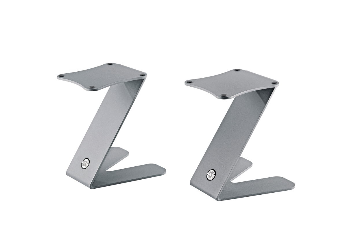 Pár stylových stojanů na studiové monitory a počítačové reproduktory skvěle doplní minimalistický design vašeho domácího studia, nebo herního království. Stojany jsou vyrobené z jednoho kusu oceli, proto jsou velmi odolné a disponují nosností až 15 kg. Horní deska obsahuje pogumované podložky pro maximální bezpečí vašich monitorů a eliminaci vibrací způsobených nízkými frekvencemi. Stojany jsou k dostání ve třech barevných variantách.
