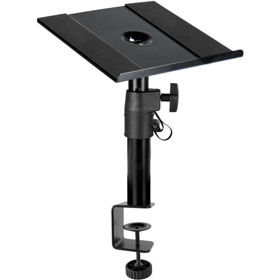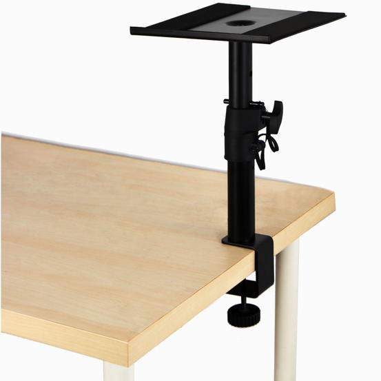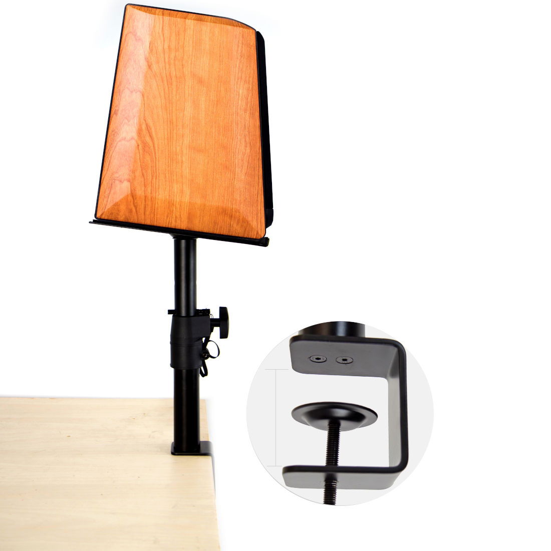 Zboží bylo vybaleno z obalu, jinak je zcela nové, nepoužité. Mozos MSK3 je nastavitelný stolní stojan pro studiové monitory, který vám jistě přijde vhod, pokud v rámci vašeho studia nemáte možnost využít klasické podlahové stojany nebo potřebujete jednoduché řešení pro umístění dalšího páru reproduktorů. Správné nastavení reproduktorů je jedním z nejdůležitějších parametrů při budování poslechového prostoru ve studiu, ale i doma. Umístění přímo na stůl způsobuje nežádoucí rezonance, kterých se těžko zbavíte. Stojany MSK3 jednoduše připevníte k desce stolu, aniž byste jej museli poškodit a pouze doladíte nastavení výšky či náklonu. Bezpečnostní příruba slouží jako pojistka proti pádu zejména při naklonění nosné plochy. Tu můžete kromě reproduktorů využít také pro stylové umístění notebooku či projektoru.