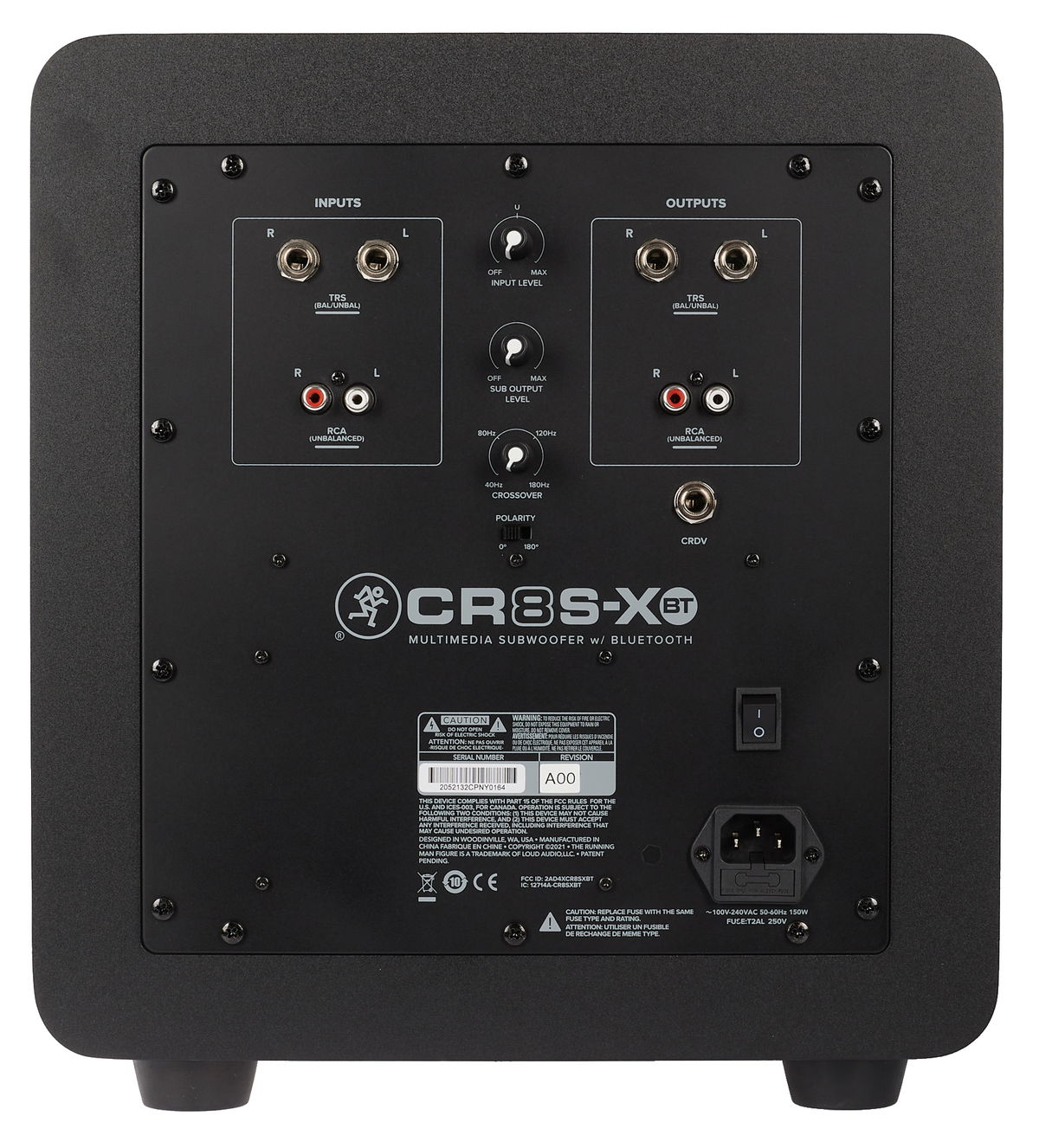 Studiové subwoofer CR8S-XBT v sobě ukrývá 8" basový reprorduktor, který spolu se zesilovačem třídy D vytváří nabízí maximální výkon až 200W. Subwoofer nabízí bezdrátovou technologii Bluetooth, takže můžete streamovat vaší oblíbenou hudbu bez jediného kabelu. Zadní panel potom obsahuje flexibilní konektivitu v podobě dvou párů Jack/RCA vstupů a výstupů. Dále zde naleznete přepínač L/R, potenciometry O/I level/Crossover a výstup pro CRDV stolní ovladač hlasitosti (součástí balení).