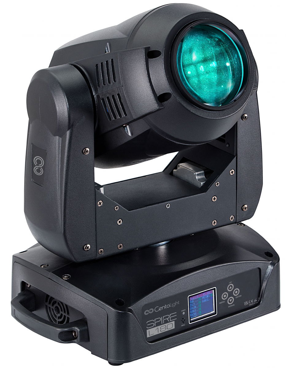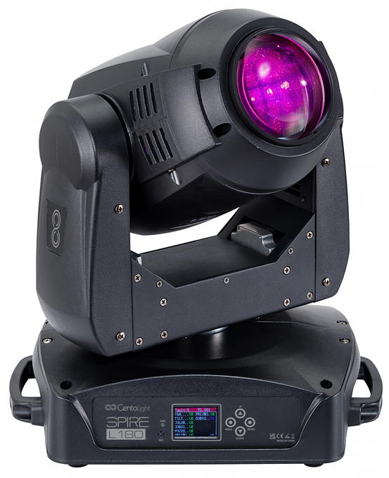 Spire L180 od společnosti CentoLight je profesionální otočná hlava typu beam, která využívá veškerých výhod LED technologií, jako jsou úspora energie, nízká produkce tepla a dlouhá životnost. Přístroj poskytuje intenzivní osvětlení o síle 69 000 luxů ve vzdálenosti 2 metry a nabízí široké spektrum světelných a vizuálních efektů, díky nimž oživíte každou událost od plesů a večírků až po festivaly a další akce. Mezi četné funkce patří jak plynulé stmívání světla, tak možnost navození stroboskopického efektu. Přístroj je vybaven barevným kotoučem se sedmi barvami plus bílou. Disponuje také šesti rotujícími a osmi fixními gobo šablonami, jakožto i dvěma otočnými hranoly. Je tak vhodnou volbou pro každého, kdo hledá multifunkční otočnou hlavu schopnou vytvářet komplexní světelné efekty. Součástí balení je kromě Spire L180 také napájecí kabel, DMX kabel a dva háky pro upevnění.