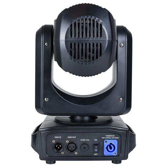 Otočná hlavice, která kombinuje výkonný 100W LED paprsek s RGB vnějším kroužkem. 7+ otevřených individuálních barev a gobo kolečko 18-ti fasetový hranol. Nastavitelný rozsah otáčení/náklonu. Ovládání DMX (11/14 kanálů), automatický režim, master/slave, nebo v režimu zvuk-světlo. Vhodná pro volné použití i pro montáž na konstrukci (součástí balení držák) a je ideální pro pódia, bary, noční kluby a mobilní DJe.