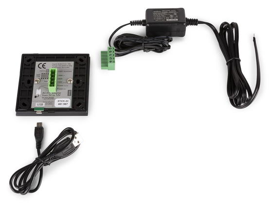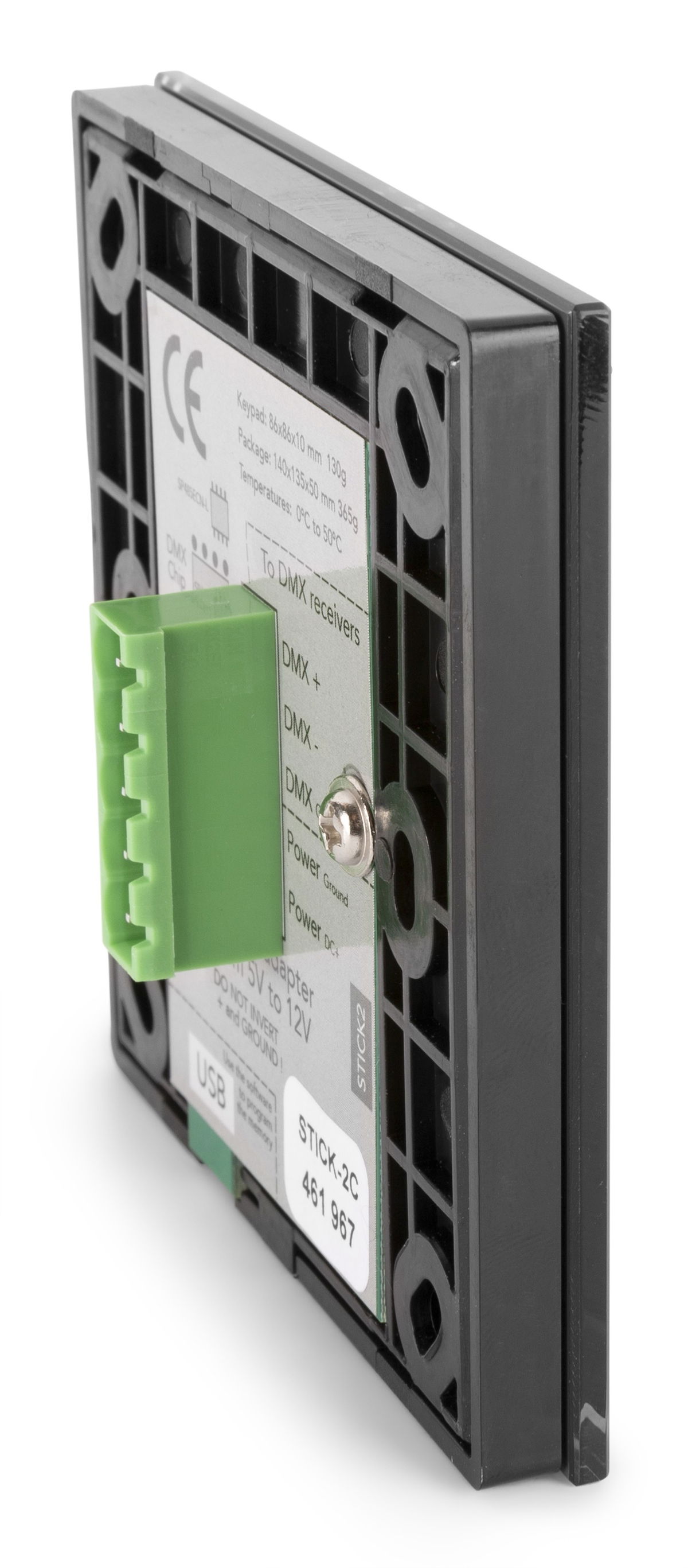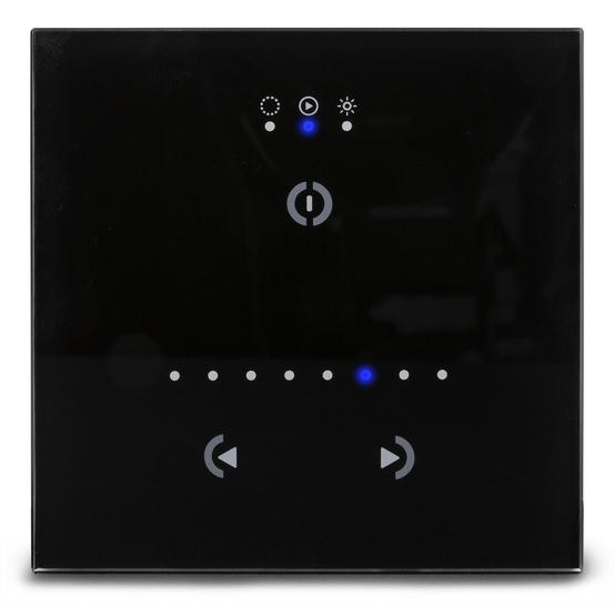 Samostatný nástěnný DMX ovladač/přehrávač s integrovaným DMX protokolem. STICK-GU2 nabízí jednoduché a výkonné řešení pro ovládání RGB osvětlení. Možnost ovládání 128DMX kanálů, nahrávání programů z PC, Mac, Androidu, iPadu nebo iPhonu do zařízení pomocí softwaru ESA (PC) nebo ESA2 (PC/Mac). Software umožní definovat kanály, umístit simulaci do rastru a následně si připravit až 24 scén (programů). Jedná se o Stand Alone, takže je možné pomocí ovladače přepínat nahrané programy, zrychlit je, zpomalit, ztmavit či zesvětlit, případně zcela vypnout. Update programů probíhá přes micro USB port. Na zadní straně je pak vstup pro napájení 5-12V a DMX pin pro připojení DMX světel či DMX dimmerů. Součástí balení je napájecí zdroj, USB kabel pro PC a skleněný ovladač na zeď. Zařízení nelze ovládat přes Wi-Fi nebo internet.