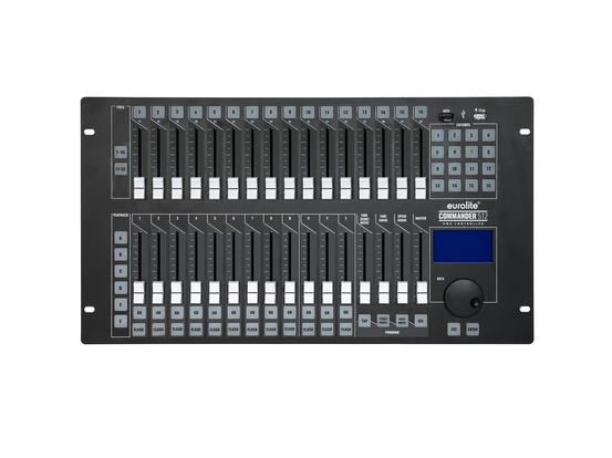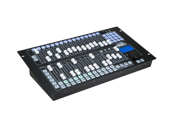 Moderní divadelní osvětlovací pult pro 512 DMX kanálů, samostatné stmívací fadery pro scény a programy. Navrženo pro pohyblivá světla, světelné efekty, LED bodová světla a stmívače. 57 scén/programů (chase), 767 cue distribuovaných na 9 stránkách Snadno nastavitelné hlavní stmívání, fade time a doba chodu Včetně různých barevných krytů faderů Dobrá vizuální kontrola scén a programů pomocí inteligentních stavových LED Manuální, časově řízený nebo zvukem řízený režim běhu programu (chase) Několik programů a scén lze spustit současně Ovládání zvukem pomocí audio signálu nebo tlačítka TAP USB port pro ukládání dat programu (19") 48,3 cm instalace do racku 6 U Ovládání přes DMX; Zvukem přes mikrofon; Zvukem přes 6,3 mm jack konektor (stereo) LCD displej Pro oblasti použití, jako jsou: Kluby/taneční školy; Svatby/gala akce; Vybavení veletrhů a obchodů; pódia; divadla; restaurace, bary a hotely; Pronájmy Firmware lze aktualizovat Obsah balení: 1 x zařízení, 1 x uživatelská příručka, 1 x napájecí kabel, 1 x barevné krytky, 1 x USB klíčenka