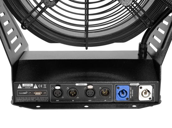 Vysoce výkonný DMX pódiový ventilátor s nastavitelným úhlem výstupu vzduchu. Skvělý efekt při použití např. s výrobníky mlhy, sněhu a bublin. Nastavitelná výstupní rychlost. Nastavitelný úhel výstupu vzduchu. Rychlá instalace ke konstrukci pomocí omega držáků. Robustní kovové pouzdro. Ovládání přes Stand-alone; DMX; QuickDMX přes USB (volitelné); W-DMX pomocí bezdrátového řešení přes USB (volitelné); CRMX od LumenRadio přes USB (volitelné). Monochromatický LCD displej. Robustní rukojeť pro přenášení. Síťový vstup a výstup pro připojení napájení až 8 jednotek. Obsah balení: 1 x zařízení, 1 x uživatelská příručka, 1 x napájecí kabel, 2 x držák omega