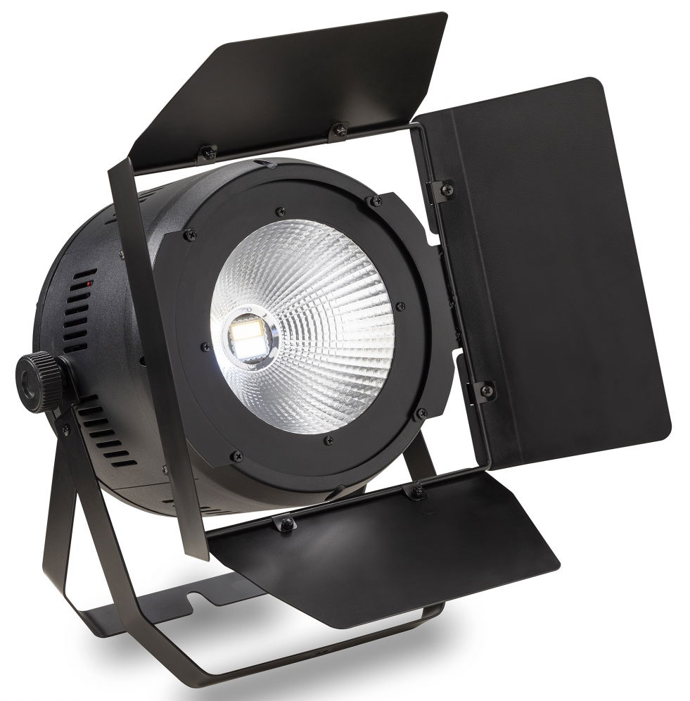 Scenic W2001 od společnosti CentoLight je scénický LED PAR reflektor, který kromě obvyklých výhod LED diod, jako jsou energetická úspora, nízká produkce tepla a dlouhá životnost, využívá také technologii COB (Chip On Board). Tato technologie spojuje velké množství LED čipů na malé ploše a vytváří tak integrované LED pole, které reflektoru dodává vyšší světelnou intenzitu a zajišťuje rovnoměrnou emisi světla. Světelný zdroj tvoří jedna 200wattová COB LED dioda rozdělená do dvou zón po 100 W. Jedna zóna vyzařuje studené bílé světlo o barevné teplotě 5600 K, zatímco druhá nabízí teplejší tóny o 3200 K. Pomocí DMX lze tyto dvě barvy kombinovat dle vašich představ. Díky tomu se reflektor hodí do míst, kde je potřeba bílé osvětlení s měnitelnou barevnou teplotou, jako jsou divadelní představení, umělecké výstavy nebo muzejní expozice. Navíc disponuje funkcí lineárního tlumení světla pro plynulé ovládání intenzity osvětlení a poslouží také jako stroboskop. Další předností tohoto reflektoru je jeho spolehlivost. Disponuje kvalitními LED čipy a digitálním procesorem, který má za úkol kontrolovat teplotu LED čipů a rychlost ventilátorů a tím zajistit co nejdelší životnost LED diod. Milovníky ticha pak jistě potěší možnost vypnout ventilátory přístroje a zajistit tak jeho naprosto tichý chod, i když za cenu částečného snížení svítivosti. Tuto funkci využijete zejména v prostředích jako jsou kostely, divadla nebo konferenční sály, kde může i tiché hučení ventilátoru působit rušivě. Součástí reflektoru jsou odnímatelná směrová dvířka (barn door), která poskytují kontrolu nad úhlem světla. V balení najdete dále napájecí kabel a DMX kabel.