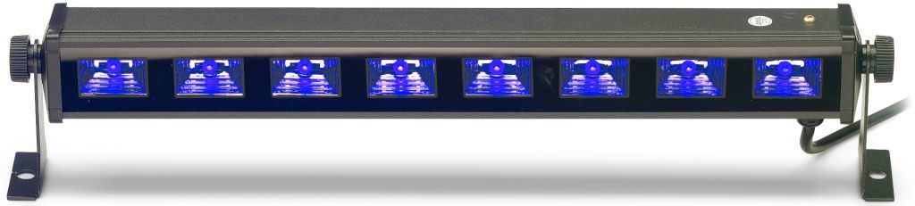 UV LED bar osazený výkonnými 8x 3W UV čipy. Dodáváno včetně instalačních lišt s možností nastavení požadovaného úhlu rampy při montáži. Vhodné pro pevné dekorativní instalace. Světelný efekt je vybaven UK zástrčkou typu G. Pro zapojení do elektrické sítě využijte přiložený 10A UK – EU adapter.