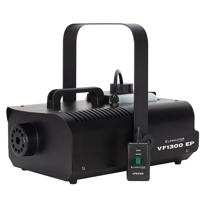 Eliminator Lighting VF1300 EP je mobilní DMX výrobník mlhy s výkonem 1200 W, který je skvělý pro mobilní baviče a středně velké noční kluby a bary, kde vytvoří specifickou atmosféru.