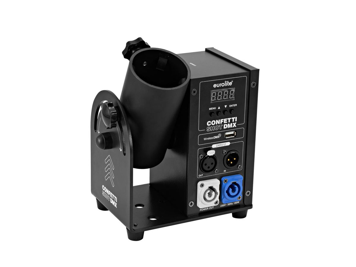 Elektrická jednotka s DMX ovládáním pro děla o délce 50 a 80 cm na odpalování konfet a stuh. Úhel vypalování lze plynule nastavit. Ovládání přes DMX; QuickDMX přes USB (volitelné); W-DMX bezdrátovým řešením přes USB (volitelné); CRMX od LumenRadio přes USB (volitelné). 4-místný 7-segmentový LED displej. Vhodné pro svatby/galavečery/akce/divadlo apod.