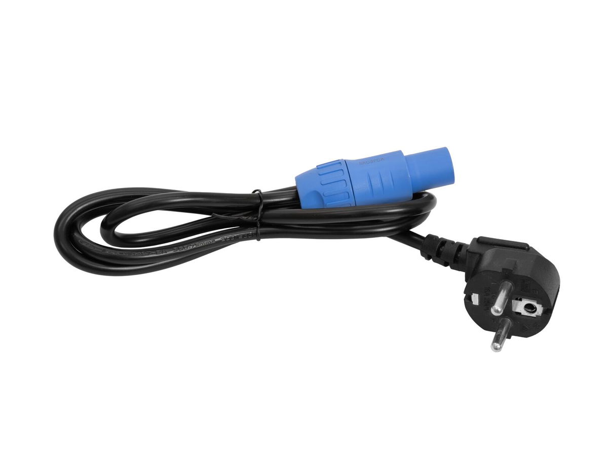 Připojení k napájení: Síťový vstup přes P-Con (modrý), montážní verze, napájecí kabel s bezpečnostní zástrčkou