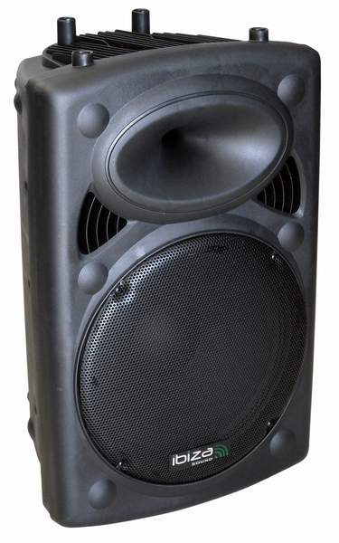 15" 2-pásmová aktivní plastová reproduktorová soustava IBIZA. Obsahuje vstupy: 2xMIC/LINE (jack6,3), 1xLine (RCA). Výstupy: 1x Mix out (RCA), 1x speakon (min 8ohm). Po připojení pasivní reprosoustavy se výkon rozdělí mezi aktivní a připojenou externí pasivní soustavu. Soustava má vestavěný USB/SD/MP3 přehrávač s LCD displejem a Bluetooth. Cena za kus.