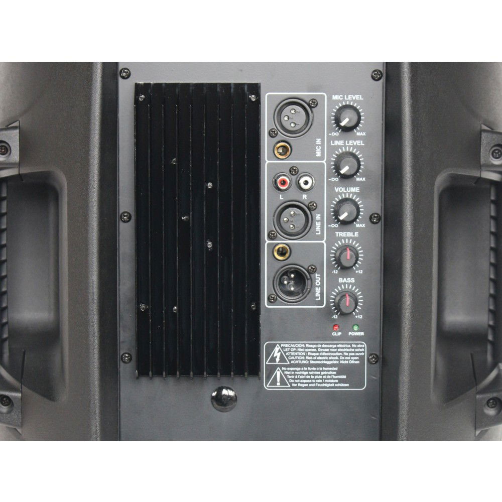15 "reproduktor v silném ABS provedení. Osazen velmi kvalitním středo-basovým reproduktorem a vysoce kompresním výškovým reproduktorem. Reprobox je odolný proti nárazu je doplněn kovovou mřížkou, která chrání subwoofer. Reproduktor může být použita samostatně, nebo v kombinaci s dalšími reproboxy nebo subwoofery. Jeho ideální použití je v barech, restauracích, malých divadlech, fitness a konferenčních místnostech a na pódiích. Vestavěný 800W zesilovač s crossover. 15 "Extrémně výkonný středo-basový reproduktor. Line a mikrofonní vstup s bass a treble kontrol.