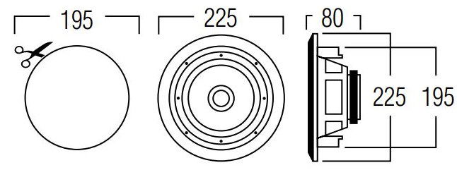 - Krátký popis: Dvoupásmový, kulatý vestavný reproduktor s výkonem 85 W a vynikajícím zvukem.