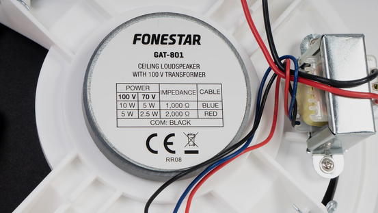 - Krátký popis: 8" kulatý vestavný širokopásmový 100 V podhledový reproduktor.