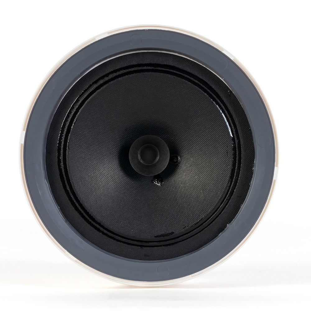 Moderní design s nízkoprofilovou bezrámečkovou kulatou mřížkou dělá tento reproduktor téměř neviditelným při jakékoli instalaci.
