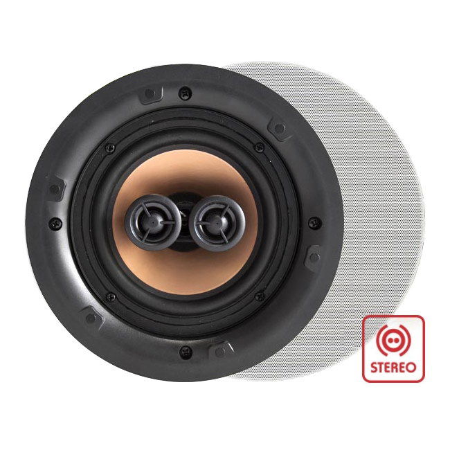 Plochý, designově čistý, stereofonní dvoupásmový kulatý vestavný reproduktor
