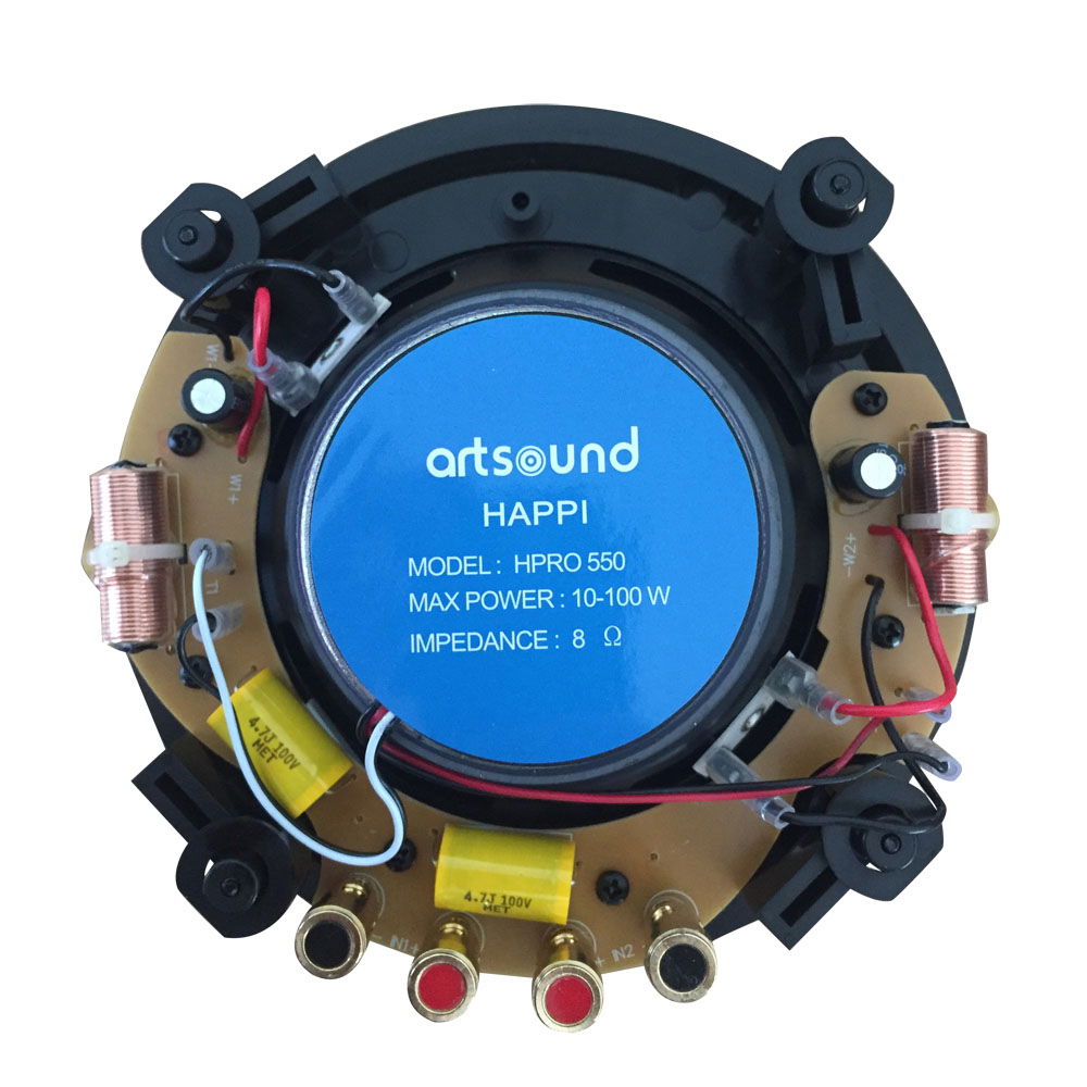 Artsound HPRO550 je plochý dvoupásmový kulatý vestavný reproduktor, který dosahuje vysokých hodnot v oblasti absorpce vibrací. Magnetická mřížka reproduktoru působí esteticky a hliníková membrána reproduktoru dobře odolává vlhku a tím se prodlužuje její životnost i v náročnějších podmínkách a zároveň rozšiřuje možnosti umístění a využití reproduktoru. Tomu napomáhá také vlhkuodolný magnetický systém..