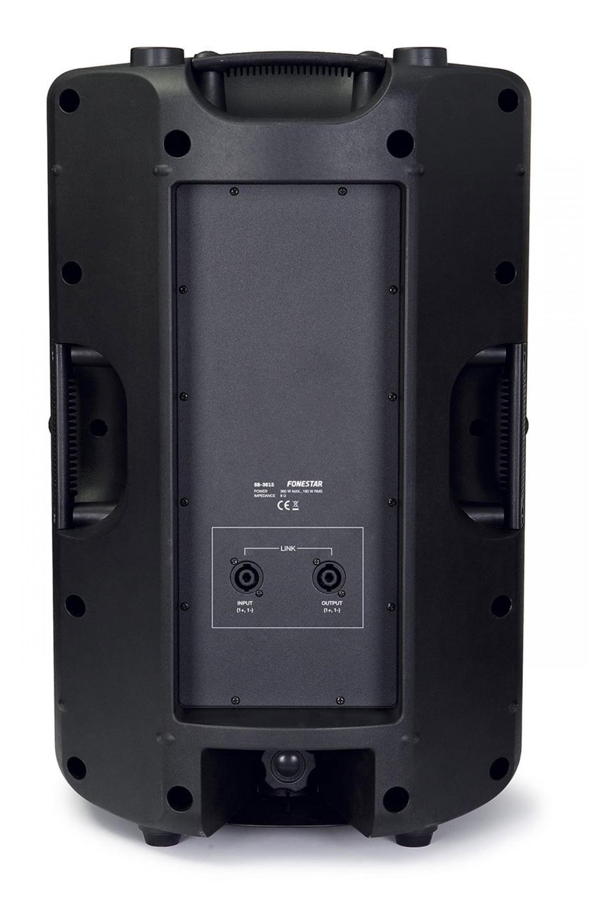 Vysoce výkonný reproduktor vyroben z polypropylenu s vysokou hustotou. Přední kovová ochranná mřížka. Závěsné body, držadla, 35mm hnízdo na stojan a tvar aby mohl sloužit jako odposlechový monitor pro kapely.