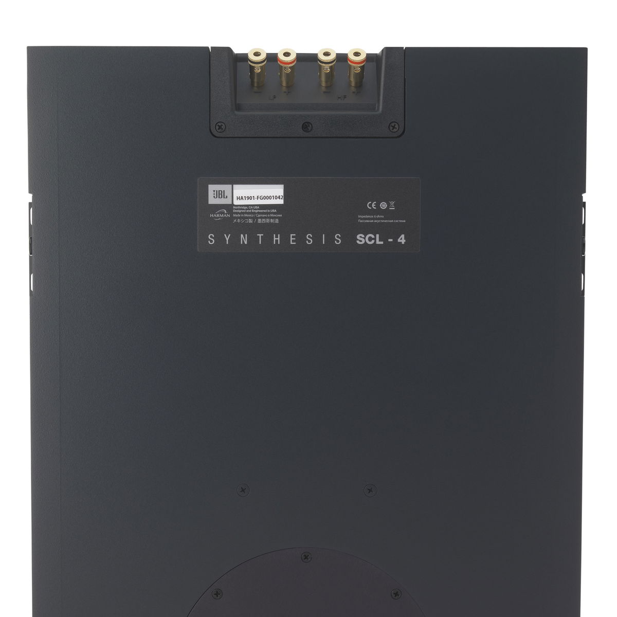 V rámci kompletního řešení vícekanálového systému JBL Synthesis lze reproduktor diskrétně integrovat do jakéhokoli prostředí a esteticky ho začlenit do každého interiéru. Instalace je možná ve vertikální nebo horizontální poloze. Kompresní měnič 2409H použitý v SCL-4 je spojen s hornovým zvukovodem s promyšlenou geometrií, která zaručuje pozoruhodně rovnoměrné a předvídatelné pokrytí v široké oblasti. V případě, že SCL-4 bude využíván pro středový kanál, je vhodná montáž s polohou zvukovodu nahoře nebo dole, nejlépe ve výškové ose s levým a pravým kanálem. Vnitřní připojení a kvalitní celokovové terminály umožňují kromě jednoduchého zapojení také bi-wiring nebo bi-amplifikaci. Maximální doporučený výkon zesilovače je 300 W.