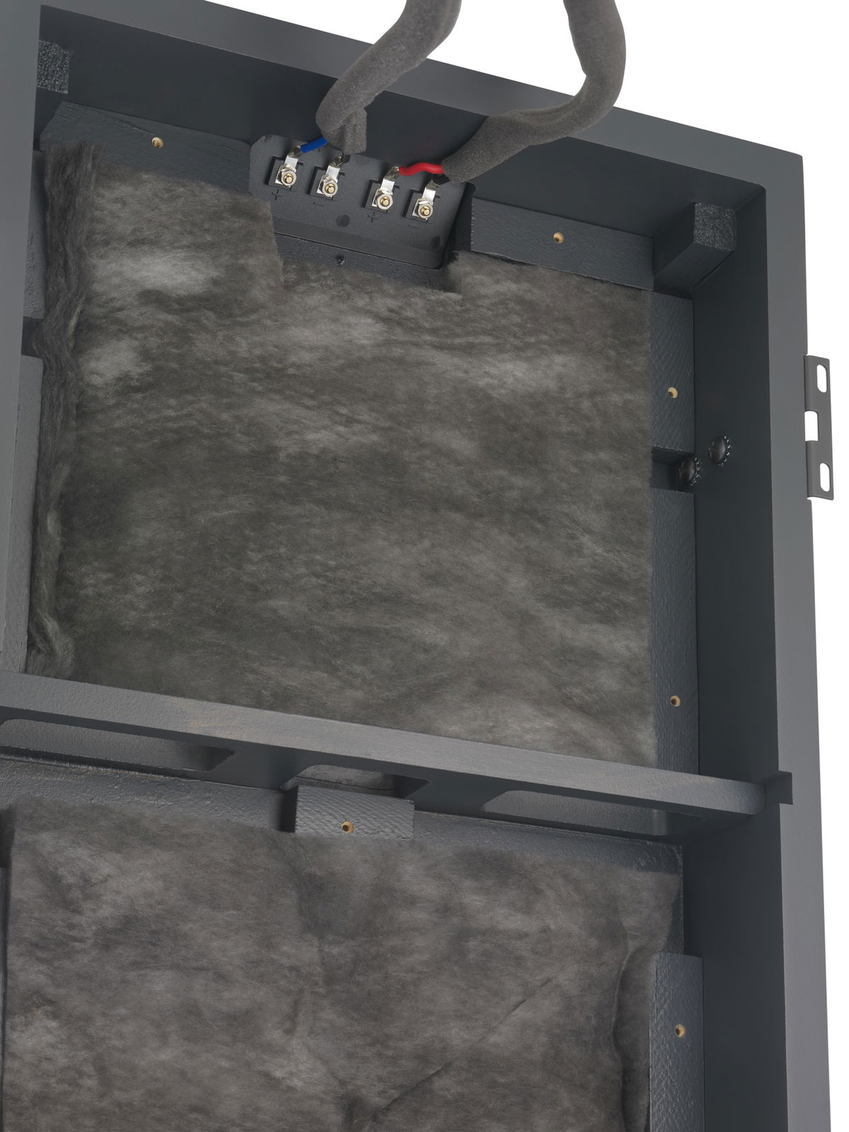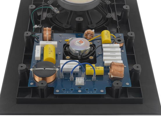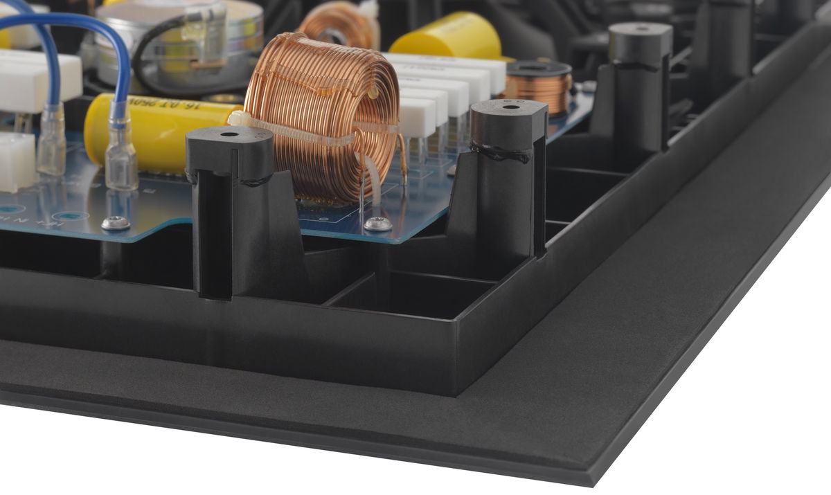 Nedělitelnou součástí dodávky je i samostatná robustní vestavná MDF ozvučnice s montážní hloubkou 102 mm, která je již dostatečně vytlumená a instaluje se za sádrokarton. Pomáhá optimalizovat zvukový výkon a zlepšuje akustickou izolaci od stěny. Díky patentovanému montážnímu systému L-Bracket s rozšířeným rozsahem je instalace reproduktoru jednoduchá a zajišťuje bezproblémové a nerezonující usazení. Z přední strany kryje reproduktory nenápadná bílá magnetická krycí mřížka bez viditelného rámečku. Mřížku lze snadno sejmout a přelakovat na jinou barvu.