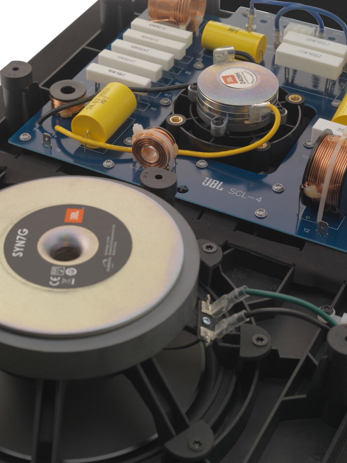 SCL-4 je osazen patentovaným vysokofrekvenčním 1" (25 mm) kompresním měničem JBL D2409H, který je odvozený od špičkového profesionálního modelu JBL D2. Tweeter využívá prstencovou membránu z velmi lehkého polymerového materiálu Teonex a je umístěn ve zvukovodu s počítačem optimalizovanou geometrií HDI™ (High-Definition Imaging), která je výsledkem intenzivního výzkumu nuancí designu horny. Tato patentovaná geometrie výrazně vylepšuje vertikální i horizontální rozptyl a zajišťuje stabilní frekvenční odezvu v místnosti na poslechové ose i mimo osu a bezproblémový přechod mezi vysokofrekvenčním a nízkofrekvenčním měničem. Reproduktor nabízí obrovskou dynamickou rezervu s minimálním zkreslením i při významných úrovních hlasitosti.