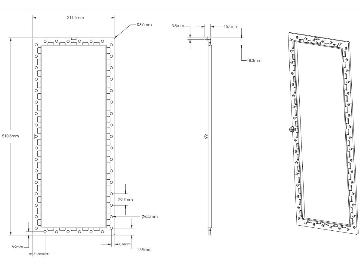 • Po instalaci nástěnné desky vyřízněte otvor pro reproduktor. Samotný rám držáku využijte jako šablonu pro vyřezání.