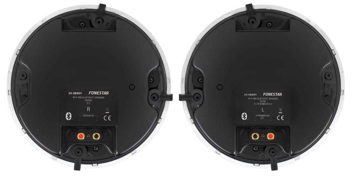 KS-08WIFI je praktická sada pro komplexní skryté ozvučení menších až středních prostor. Set se skládá z aktivního a pasivního vestavného reproduktoru s magneticky uchycenou kulatou mřížkou. V primárním reproduktoru je vestavěný přijímač (Wi-Fi + Bluetooth) a výkonný zesilovač 2 x 25 W třídy D, který nabízí potřebnou spolehlivost, vynikající kvalitu zvuku a vysokou účinnost. Zároveň má ještě 1 pomocný vstup 3,5 mm pro připojení externích analogových zdrojů signálu. Primární reproduktor je nutné vždy připojit k napájení. Sekundární reproduktor je výhradně pasivní a k primárnímu je připojen reproduktorovým kabelem. Oba reproduktory jsou 2-pásmové koaxiální s 6,5" basovým reproduktorem + 1" výškovým reproduktorem a jsou schopné přehrávat hudbu v Hi-Fi kvalitě. Tato zvuková sada je ideální pro domácí i profesionální audio instalace (kanceláře, středně velké místnosti, kuchyně, čekárny, kliniky atd.) a dodává se s dálkovým ovladačem a všemi potřebnými komponenty pro zahájení poslechu.