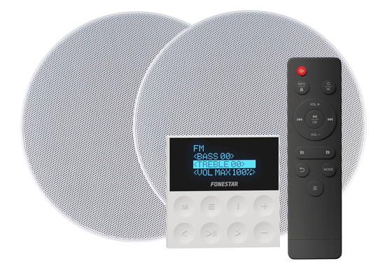 - Krátký popis: Set 2 stropních reproduktorů a nástěnného stereo zesilovače 2 x 15 W s Bluetooth, FM rádiem, USB.