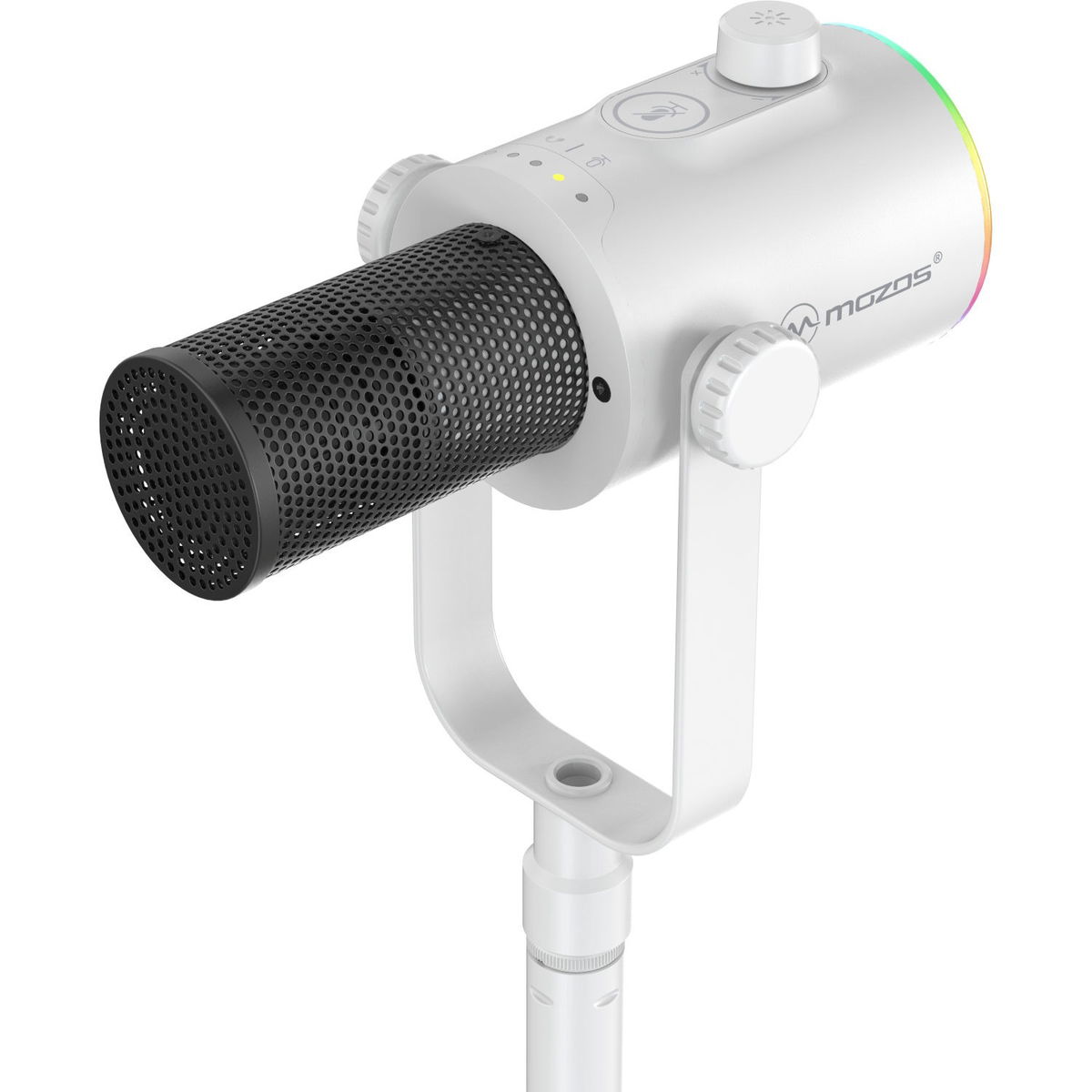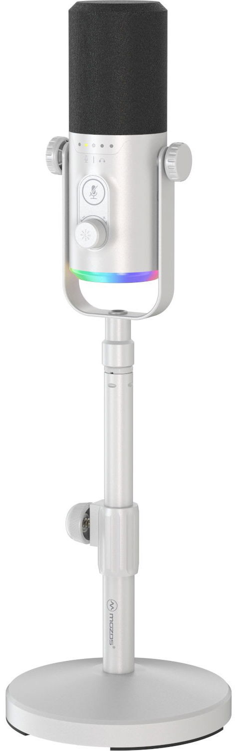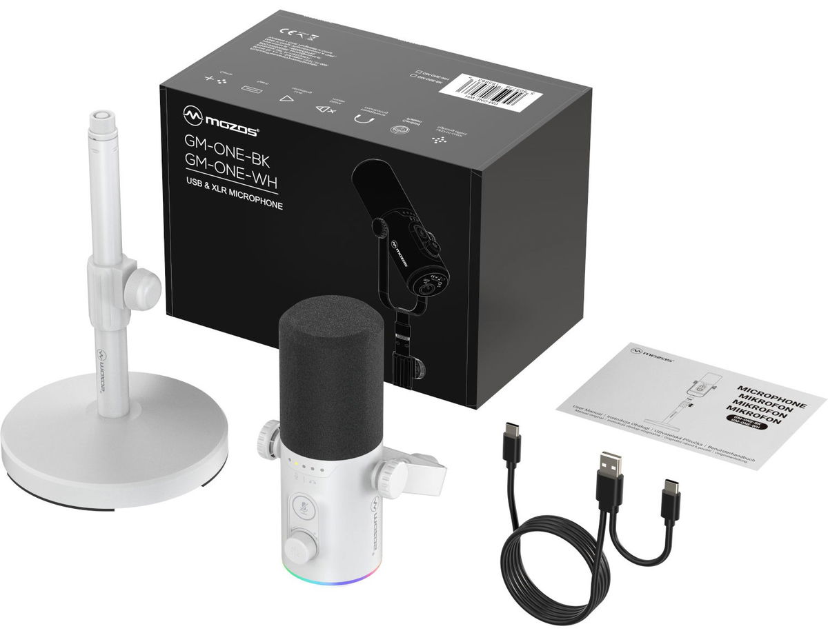 Mozos GM-ONE-WH je dynamický studiový mikrofon, který zaujme svou jednoduchostí, všestranností a především profesionální kvalitou zvuku. Díky kardioidní směrové charakteristice spolehlivě potlačuje okolní ruchy a soustředí se na zachycení zvukového zdroje se všemi jeho nuancemi. Frekvenční rozsah 50 Hz–12 kHz a vysoké rozlišení 192 kHz / 24 bitů dodávají nahrávkám přirozenou barvu a detail, což z mikrofonu dělá ideální volbu pro celou řadu využití, ať už jde o podcasty, streamy, videokonference nebo studiové nahrávání vokálů či nástrojů. Jednou z největších předností tohoto modelu je jeho duální konektivita USB-C a XLR, díky níž se snadno přizpůsobí domácímu i profesionálnímu prostředí. Digitální USB připojení umožňuje okamžitý provoz bez potřeby dalšího vybavení – stačí připojit k notebooku a můžete nahrávat, zatímco XLR výstup otevírá dveře k využití v profesionálních studiích s mixpulty, zvukovými kartami a dalšími audio rozhraními. Bytelná konstrukce, stabilní železná základna a nastavitelný stolní stojan o výšce v rozsahu 23–32,5 cm zajišťují pohodlné používání při nahrávání i streamování. Součástí balení je také 2m kabel.