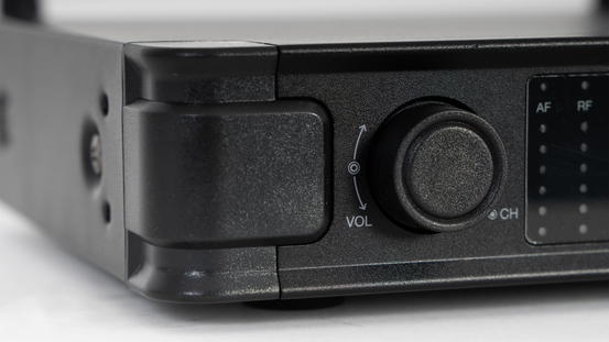 - Displej a vypínač přímo na těle mikrofonu a displej na přijímací jednotce