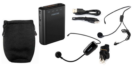 - Krátký popis: Průvodcovský PA systém na baterie s bezdrátovým náhlavním UHF mikrofonem, FM rádiem a MP3 přehrávačem / rekordérem.