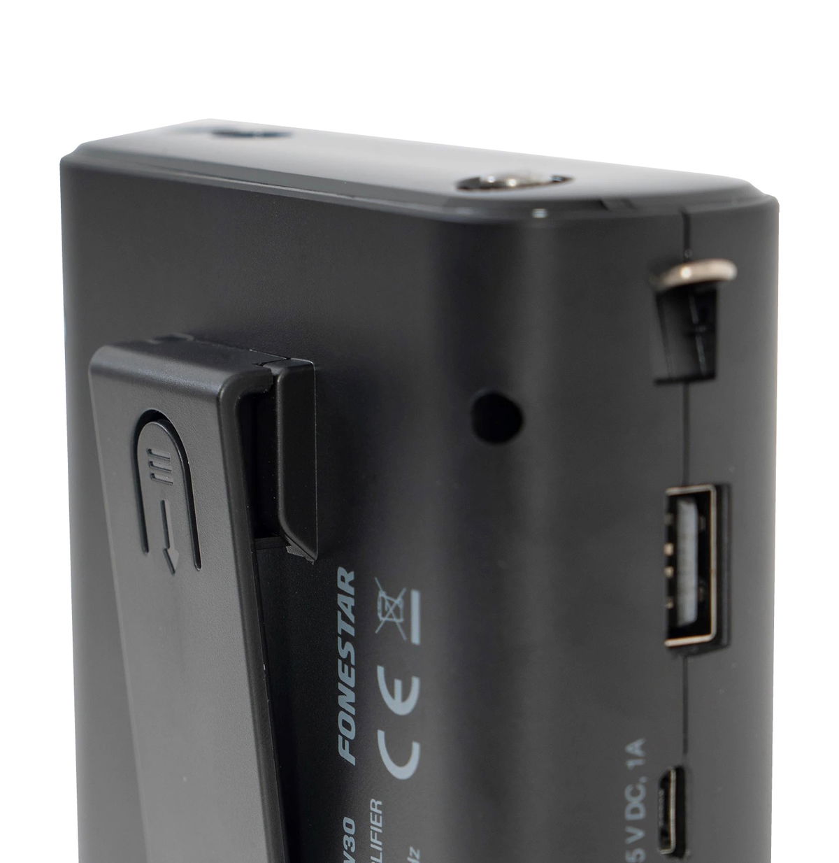 Systém je velmi lehký (250 g), kompaktní a zároveň nabízí naprosto intuitivní ovládání. Je vyroben z ABS plastu a má odolný ergonomický design vhodný pro každodenní používání. Kvalitní materiál a robustnost provedení zaručuje dlouhou životnost produktu i při pernamentním používání. Díky upevňovacímu klipu se snadno připevňuje např. k opasku a součástí je i bederní popruh a obal na přenášení. Baterie s dlouhou výdrží je ideální pro celodenní práci. FM rádio, hudební přehrávač MP3 (USB / microSD) a hlasový záznamník zpříjemňují výuku a přednášky. Dosah mezi mikrofonem a zesilovačem je až 35 m (v závislosti na konkrétním prostředí) a při střední úrovni hlasitosti vydrží baterie až 9 hodin.