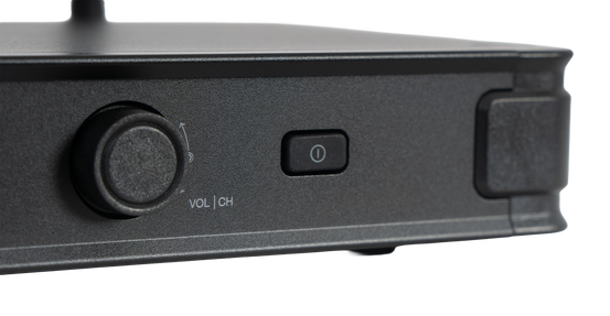Přijímací jednotka je kompaktní a vybavená symetrickým XLR i nesymetrickým 6,3mm jack výstupem, což usnadňuje integraci do ozvučovacích systémů i mixážních pultů. Díky jednoduchému zapojení a ovládání není třeba žádné složité nastavování – systém je připraven k okamžitému použití.