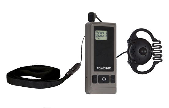 Bezdrátový přijímač průvodcovského systému pro posluchače.