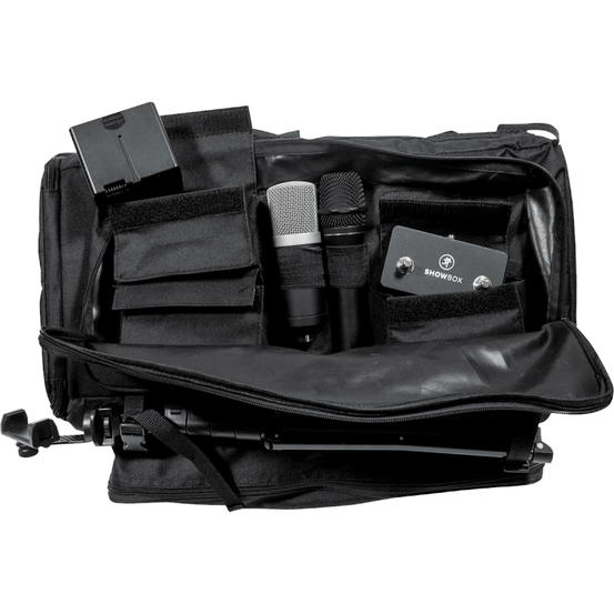 Přepravní taška vhodná pro Mackie ShowBox a příslušenství. Obsahuje polstrované popruhy (lze nosit i jako batoh) a boční rukojeť pro snadnou manipulaci.