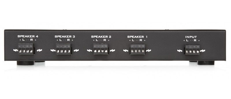 - Krátký popis: Velmi kvalitní rozbočovač pro 4 páry reproduktorů s možností samostatné regulace hlasitosti nebo vypnutí každého páru.