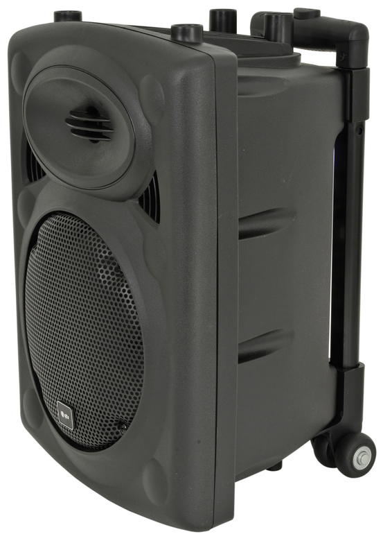 Kompaktní 8" přenosný PA zvukový systém. Vestavěný zesilovač napájený ze sítě nebo z interní dobíjecí baterie napájející hlavní měnič a…