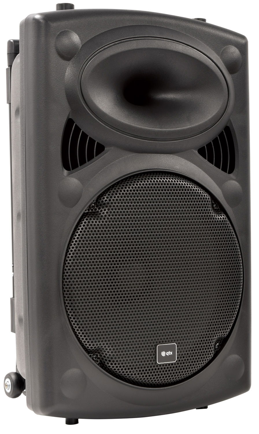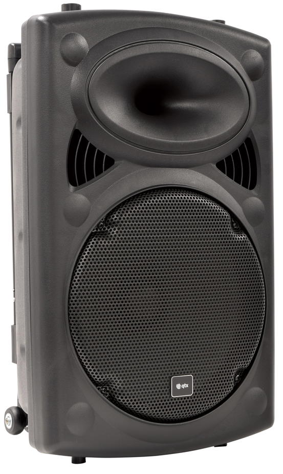 Kompaktní 12" přenosný PA zvukový systém. Vestavěný zesilovač napájený ze sítě nebo z interní dobíjecí baterie napájející hlavní měnič a kompresorem řízenou hornovou jednotku. Součástí balení jsou dva ruční bezdrátové UHF mikrofony s přijímači zabudovanými v sekci mixážního pultu/zesilovače v zadní části spolu s dalšími dvěma kabelovými mikrofonními vstupy, pomocným linkovým vstupem a integrovaným USB/SD/FM přehrávačem médií s funkcí nahrávání. V přehrávači médií je také zabudován Bluetooth přijímač, který umožňuje spárování s chytrým telefonem nebo tabletem pro bezdrátové přehrávání zvuku s párováním TWS pro propojení 2 QRPA jednotek jako stereo páru BT. Zatahovací rukojeť a zadní kolečka.