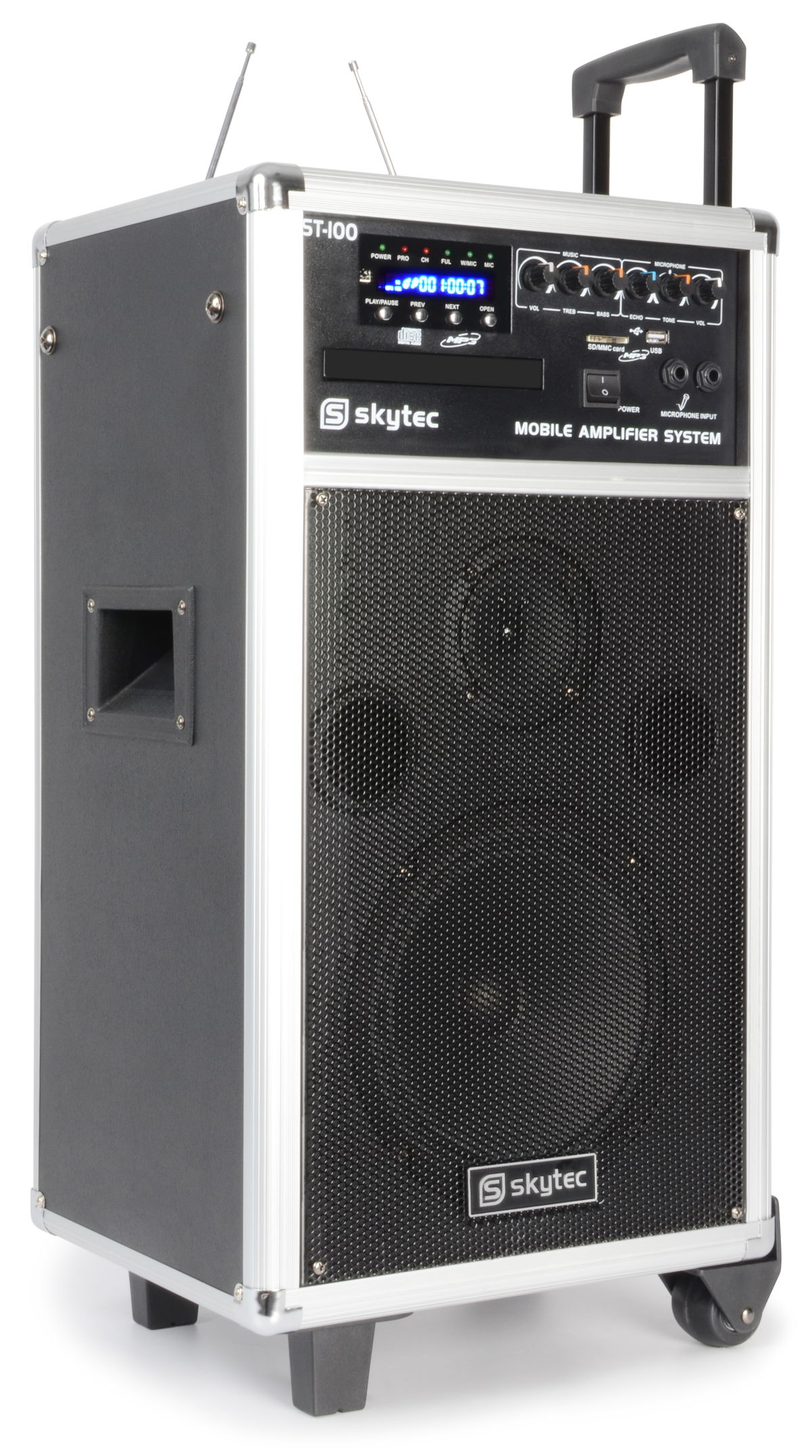 Skytec ST-100, mobilní 8" zvukový systém CD-MP3-SD-USB-2xVHF 100W