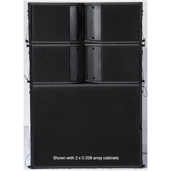 Aktivní subwoofer pro modulární systém Line Array řady C, tělo vyrobeno z 15 mm překližky s povrchovou úpravou PUR, 18" basový reproduktor s hliníkovým litým košem, integrovaný zesilovač třídy D 1000 W RMS s vestavěným DSP procesorem s přednastavenými režimy řízení frekvence a dynamiky. Hnízdo Ø 35 mm na horní straně. Subwoofer lze použít samostatně, nebo v rámci různých sestav v kombinaci s reproboxy Citronic C-208 (SA171208).